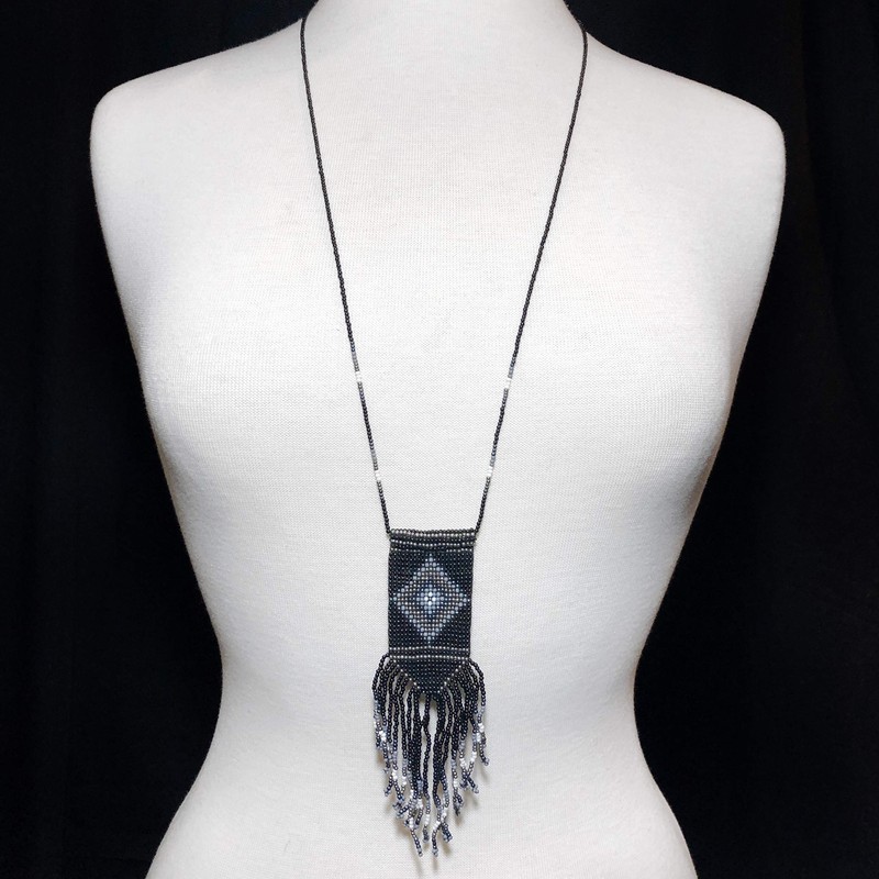 - Bead work drop peice is 5 inches including tassel fringe - all glass beads