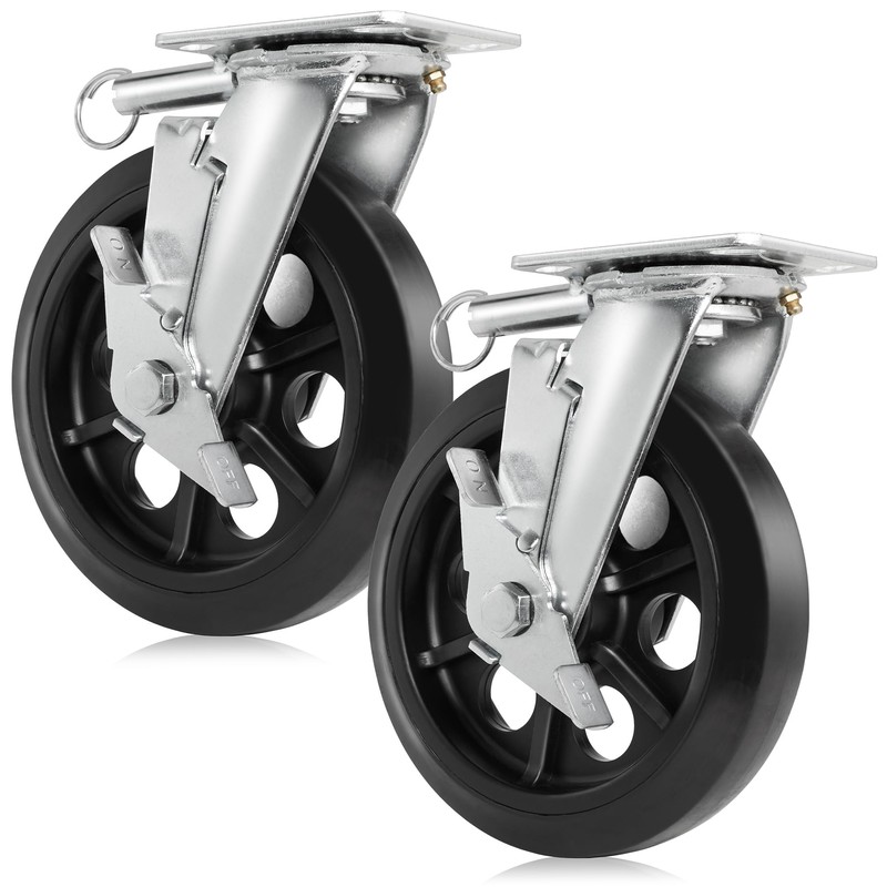 GypTool Heavy Duty Swivel Caster Wheel Set of 2 Wheels 8" x 2" - 500 lb Capacity