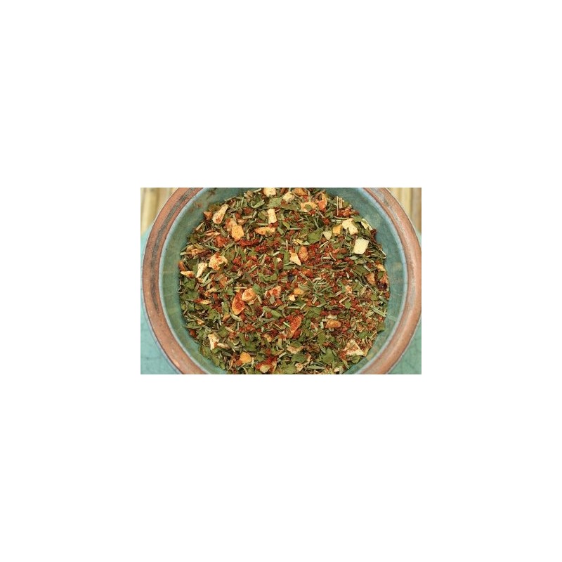 - Ingredients: paprika, basil, parsley, rosemary, thyme, chili, garlic, onions, sea salt, raw cane sugar