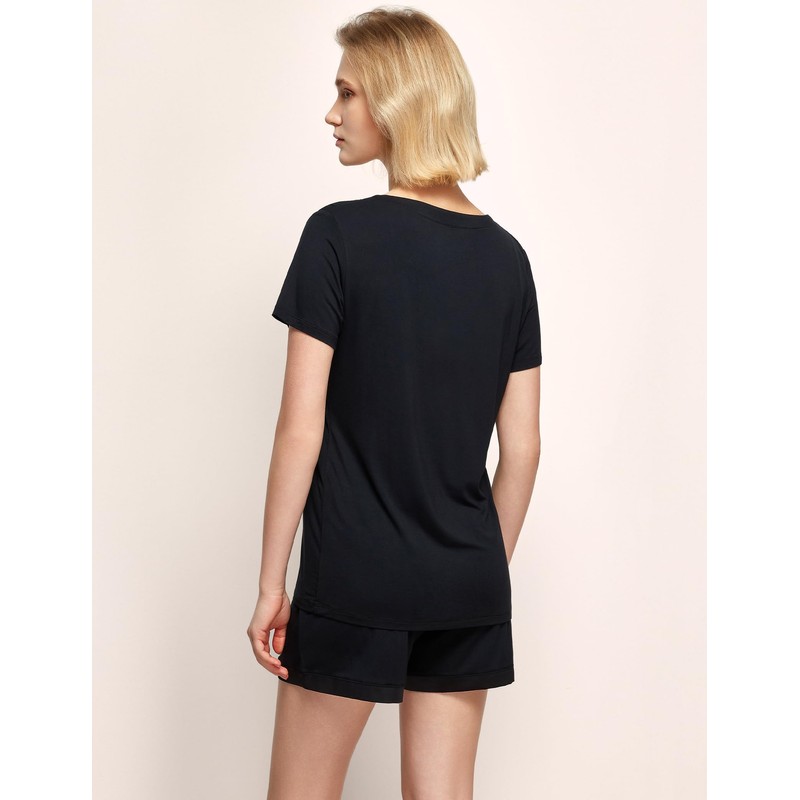 GYS Womens Pajama Sets, Short Sleeve Soft Sleepwear Tops and Shorts Pjs, Bamboo Viscose Loungewear, Black, Large