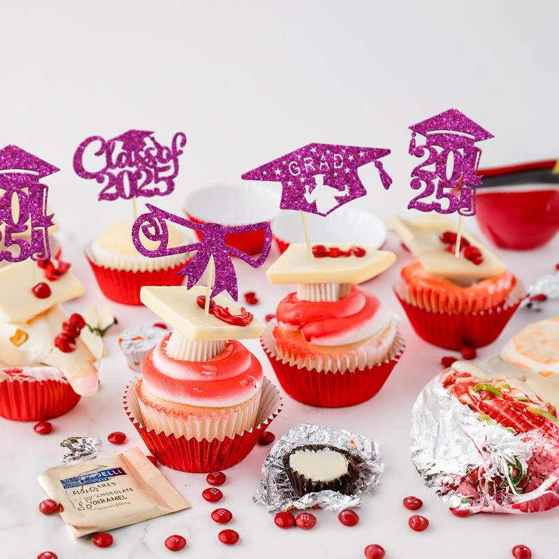 - 🎓These glitter Graduation 2025 Grad Cap Cupcake Toppers are so cute and good for 2025 graduation theme party cupcake decorations, such as kindergarten, primary, junior, senior high school, college, Master or Ph.D. graduation. They can make your cupcake more attractive and bring the fun to your party. You can also apply them for ice cream, fruits, cookies and other desserts.