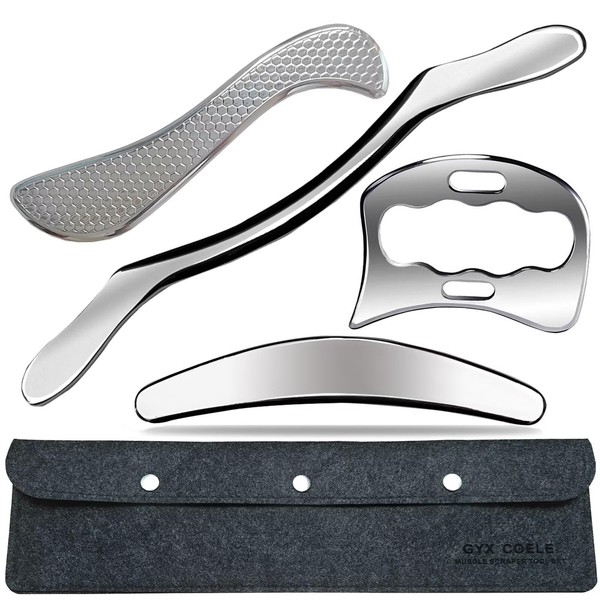 GYX COELE 4 in 1 Stainless Steel Muscle Scraper Tool,Scraping Tool Physical Therapy Soft Tissue Massage Tool, IASTM Gua Sha Instrument