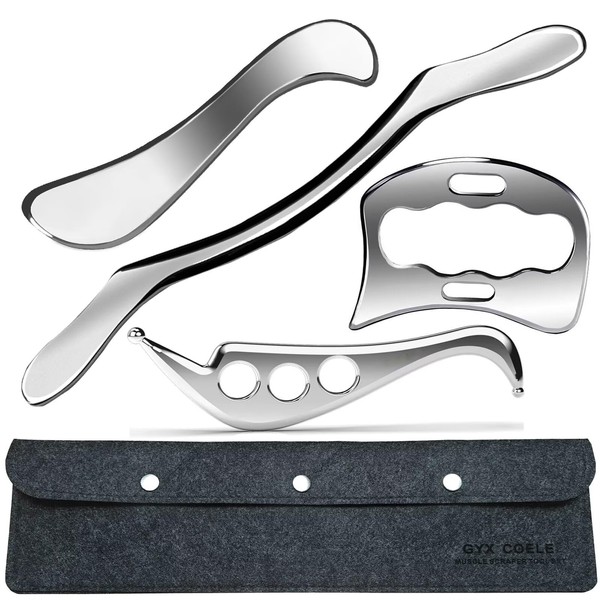 GYX COELE Professional Stainless Steel Muscle Scraping Tool Set, 4-Piece with Storage Case, Physical Therapy IASTM Tools for Soft Tissue Massage