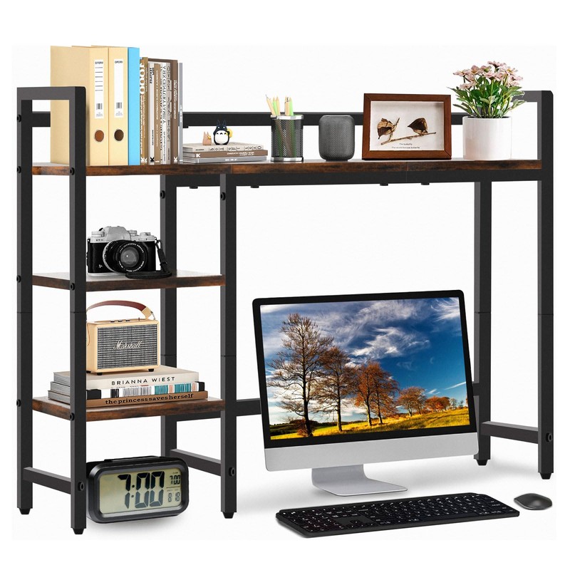 GYXZ Desktop Shelf, 45'' Desktop Organizer Shelf for Computer Monitor, 4 Tier Desktop Hutch Storage Rack for Home Office Dorm, Rustic Brown