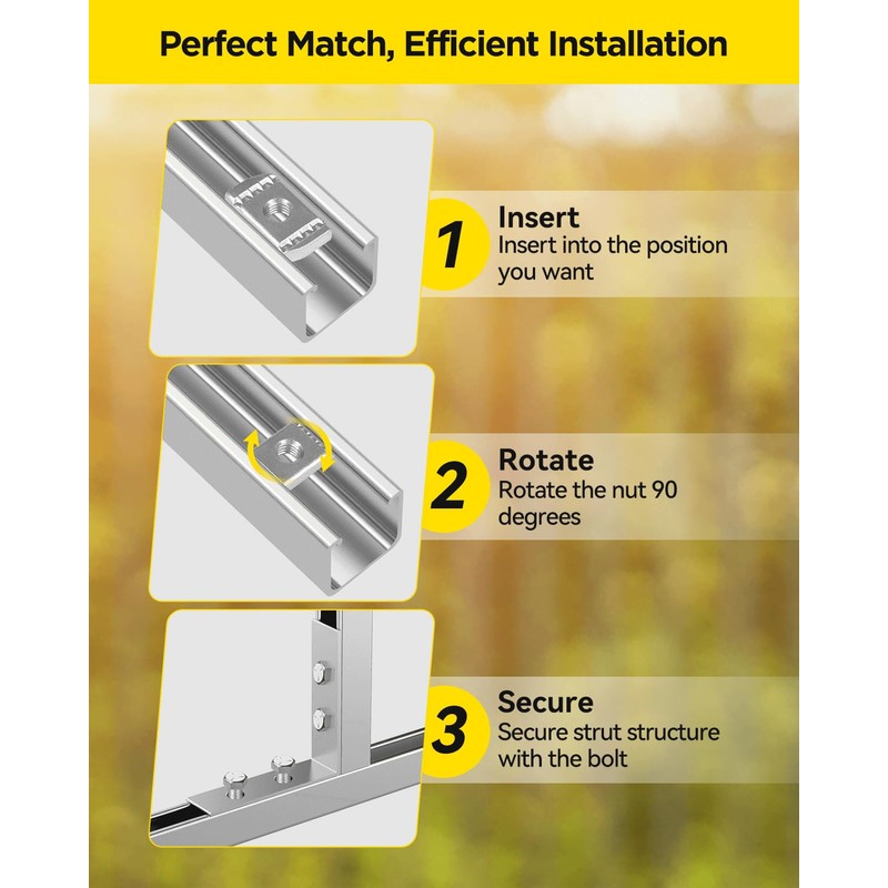 - Matched and Reliable: Our channel nuts and bolts are designed to be a perfect match, eliminating any confusion or incorrect size matching issues you may encounter. This streamlined compatibility improves efficiency and saves you time. With unified quality standards, our bolts and strut channel nuts consistently deliver the same high-quality and reliability for your projects.