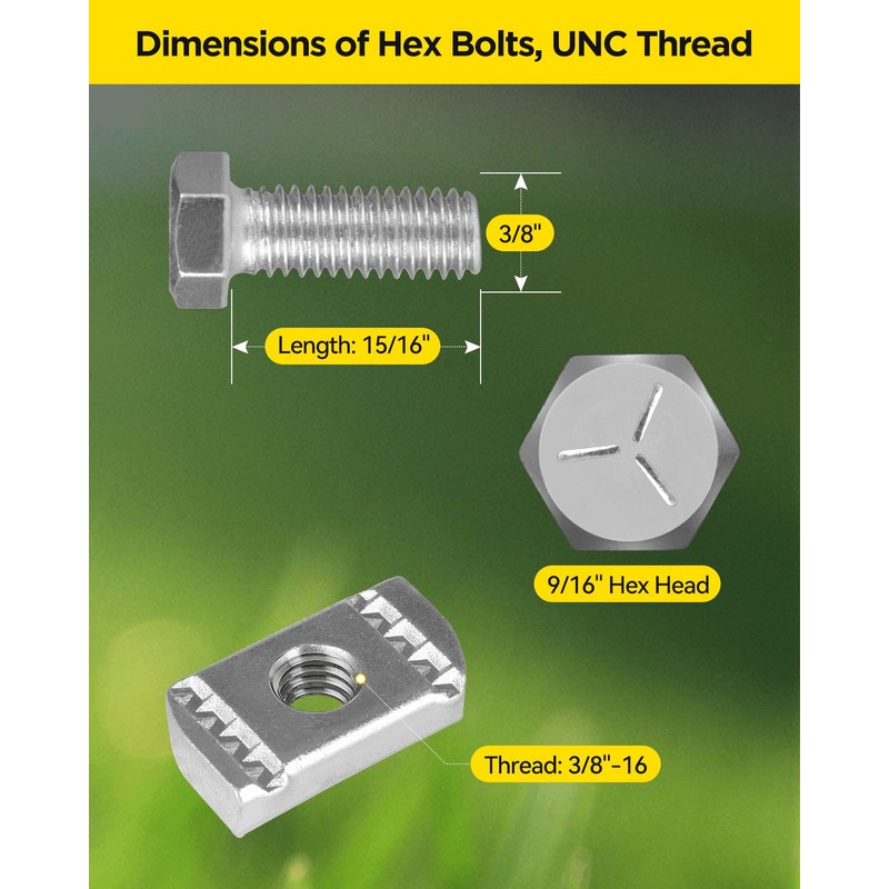 - THICKENED GALVANIZED PLATING: In addition to its aesthetic appeal, thickened zinc plating provides excellent corrosion protection, safeguarding the product from oxidation and corrosion. This ensures that the bolts and channel nuts have an extended lifespan even in damp, acidic, or alkaline environments. For outdoor applications, the thicker zinc plating is especially crucial.