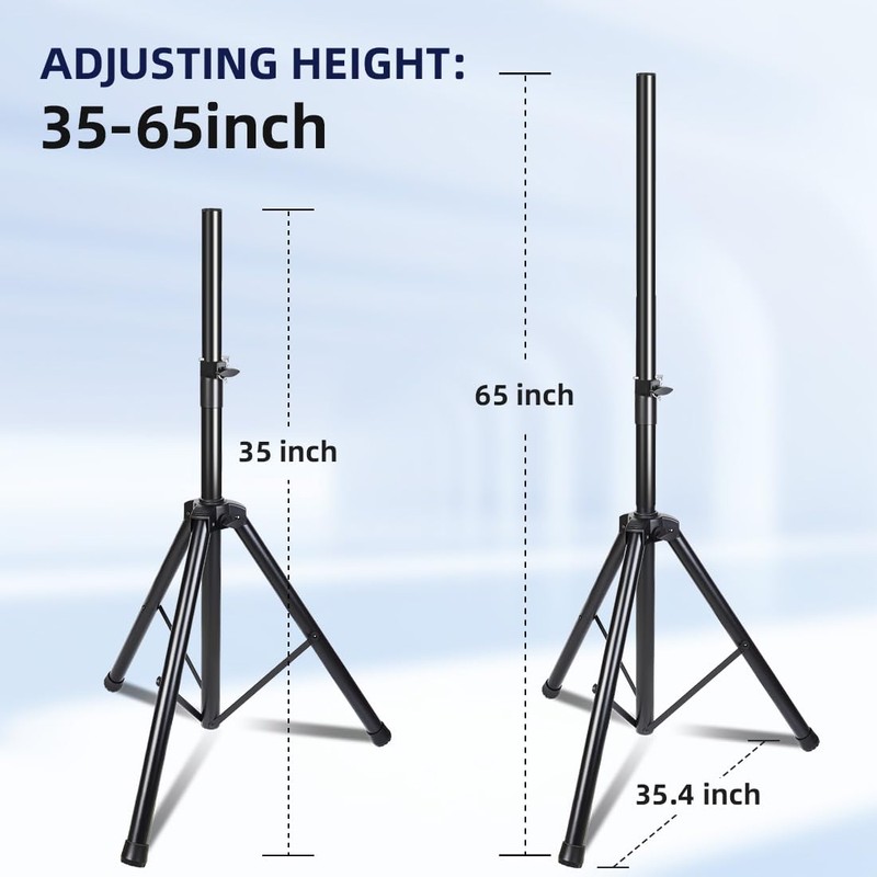 The speaker stands are made of heavy-duty tubular steel .Designed with the sturdy safety pin and screw locks to ensure its safety and stability. The speaker stands can hold 66 pounds, adjustment height is from 35 inches to 65 inches through a telescoping center column ,equipped with 5 mounting holes .Ideal for party,wedding,birthday,Christmas, Halloween, Thanksgiving.