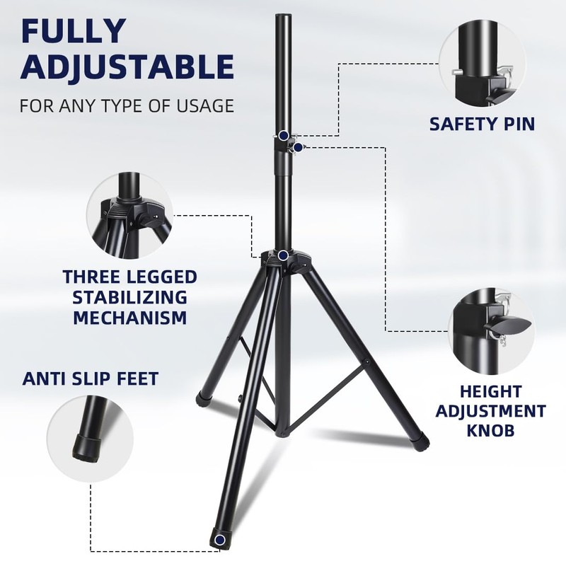 - 【Sturdy and Stable】The speaker tripod stand is made from heavy-duty Tubular Steel .Designed with the sturdy safety pin and screw locks to ensure its safety and stability