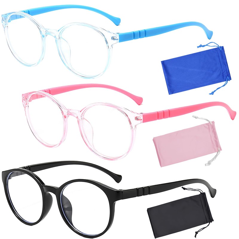 GZGRYTRC 3 Piece Blue Light Glasses, Clear Glasses, Light Blocking Computer Glasses for Gaming, Learning & Extended Screen Use
