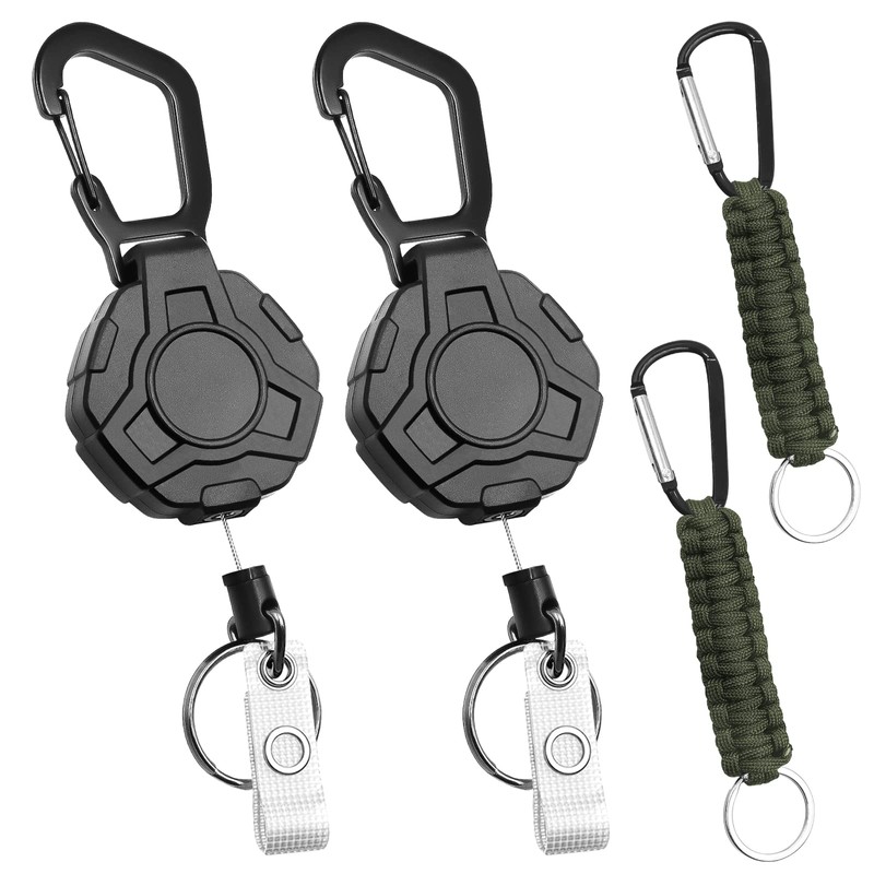 GZLCEU Pack of 2 retractable key rings, retractable 31 inch ID card holder with 2 paracord key rings for office, home, outdoor activities