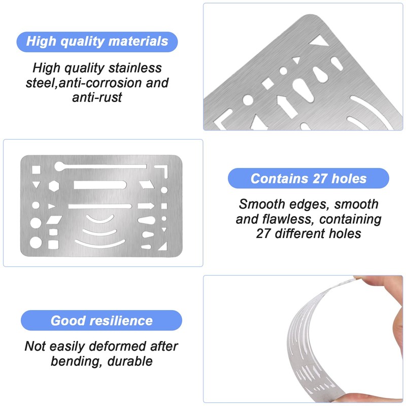- 27-hole design: metal eraser template has 27 holes designed openings that allow you to erase some special areas and draw some interesting pictures during the drawing process, you can also enjoy the fun of DIY.