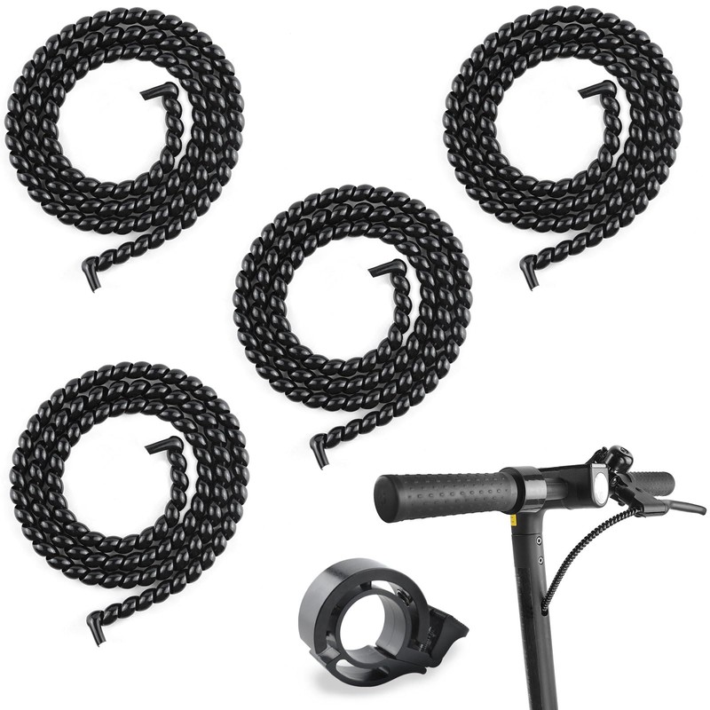 GZLFH Pack of 4 Cable Protection Tube, Spiral Cable Tube with Bicycle Bell, Cable Tube Black for Cable Management or for Hiding Cables, Scooter