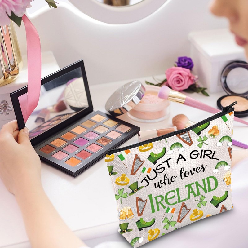 Gzrlyf Ireland Makeup Bag Ireland Themed Gifts Bag Just a Girl Who Loves Ireland Ireland Zipper Pouch Ireland Girl Gifts (Loves Ireland 3uk)