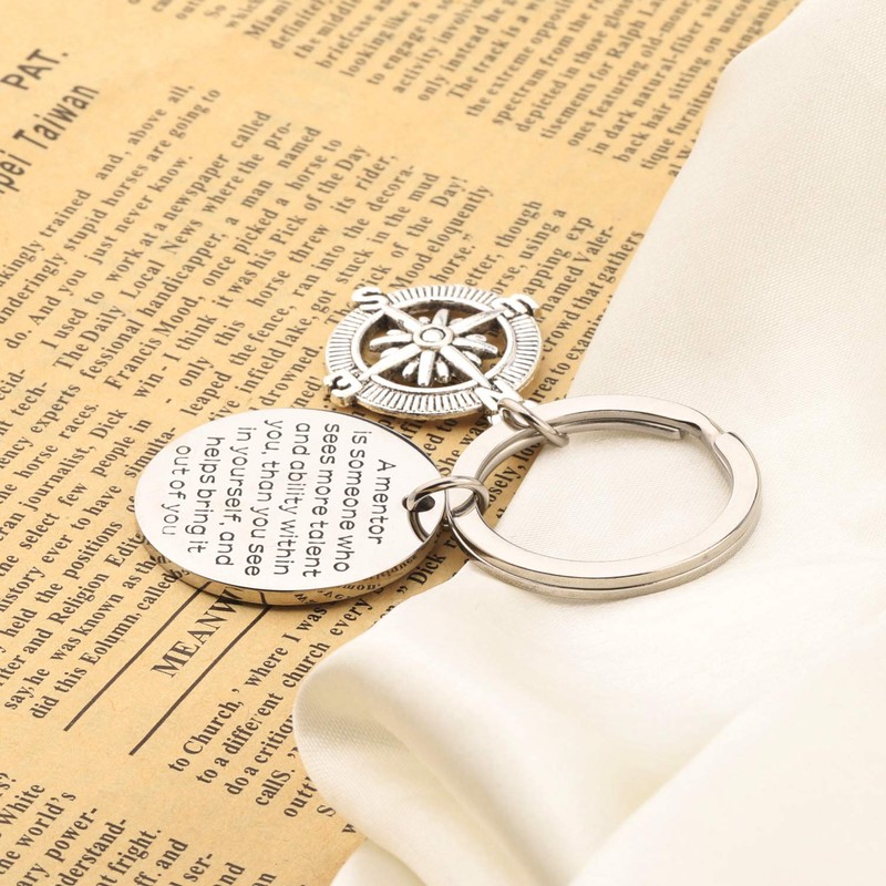 Gzrlyf Mentor Keychain with Compass Charm Mentor Appreciation Gifts for Mentor Leader Boss Coworker Leaving Gifts (Mentor Keychain C)