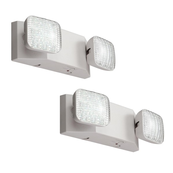 GZRUIYANG 2 Pack Emergency Lights with Battery Backup, LED Commercial Emergency Lighting Fixtures Two Head Adjustable, UL 924 Certified, Hardwired Emergency Exit Light for Business(White) 【US STANDARD】The emergency light is made of injection-molded thermoplastic ABS shell, UL-94V-0 flame retardant, so that the emergency lights with battery backup can continue to operate in the event of a fire or earthquake. Each adjustable lamp head is equipped with super bright LED lights to illuminate every corner in the dark. 【EFFICIENT & LONG-LASTING BATTERY LIFE】This commercial emergency light has a built-in nickel-cadmium 3.6V backup battery that can provide at least 90 minutes of emergency operation during a power outage and can be safely charged. Use 120V-277V AC universal voltage operation, suitable for parking lot, corridor. 【EASY INSTALLATION】The installation of the LED emergency light is very simple, it only takes a few minutes to install on the wall. Its backplane fits most standard junction boxes and snaps into place for fast and safe electrical connection. 【WIDE RANGE APPLICATION】This fire emergency light is widely used in home power outages and commercial facilities, to provide lighting for schools, churches, hospitals, canteens, commercial and industrial buildings, office buildings, exit doors or stairs and other locations. 【5 Year Warranty】- We specialized in emergency exit light fixtures for many years and offers you a 5-year warranty to cover any defected or quality issues.