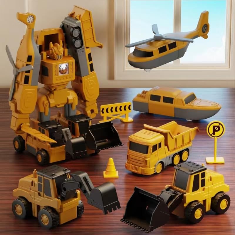 - ▲Robot Ready to Assemble--- the big robot consists of 4 trucks, airplane and boat , which can move independently.The robot toy set has many small sections that are connected by magnetic spots, which make it super easy to combine and detached.