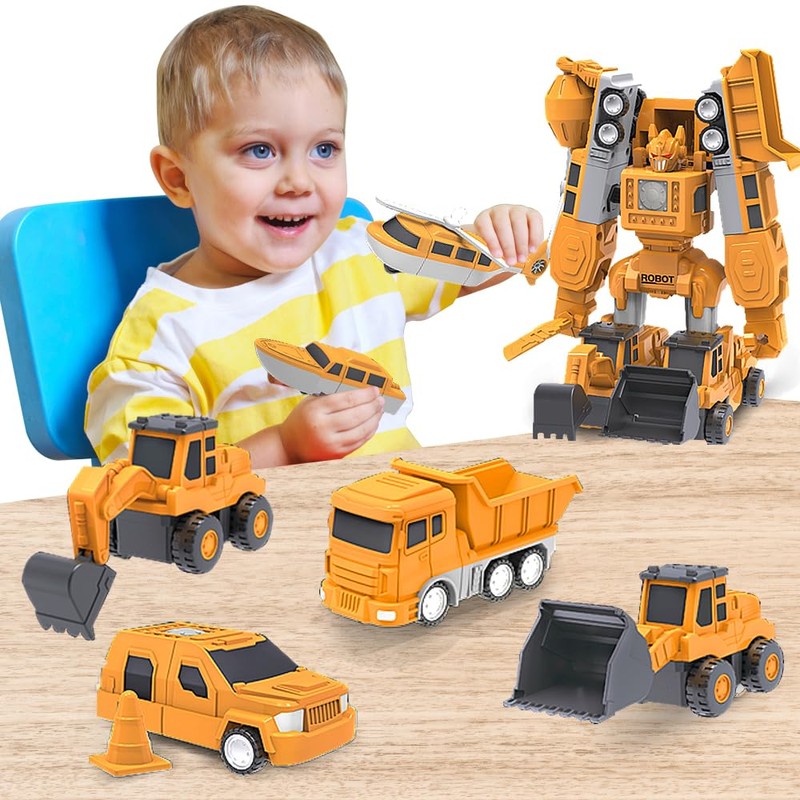 Gzsbaby Transforming Robot Toys Set for Boys, 6 in 1 Magnetic Construction Trucks Transform Robot Play Vehicles with Storage Box, Birthday Gift Toys for 3 4 5 6 7 Year Old Boys Girls