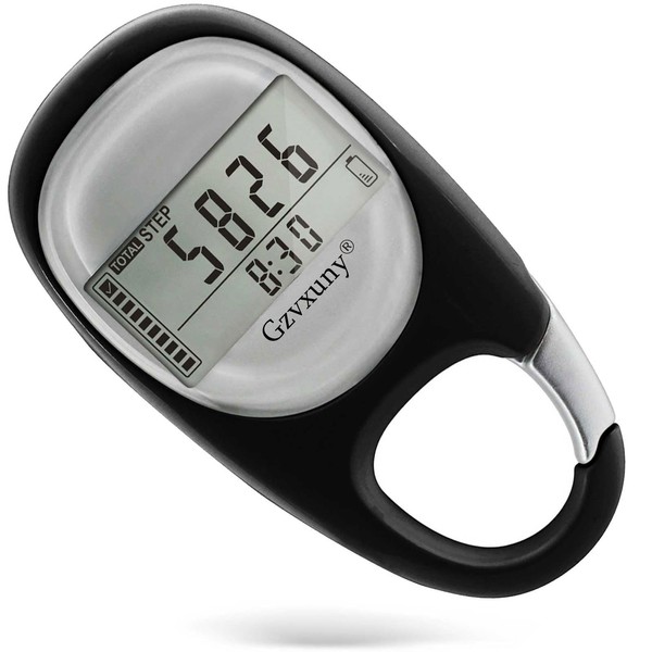 Gzvxuny Walking Pedometerwith Clip, Multifunctional Step Counter with Large LCD Display, Help Track Steps and Miles/Km Calories Burned and Activity Time 7 Days Memory - Black