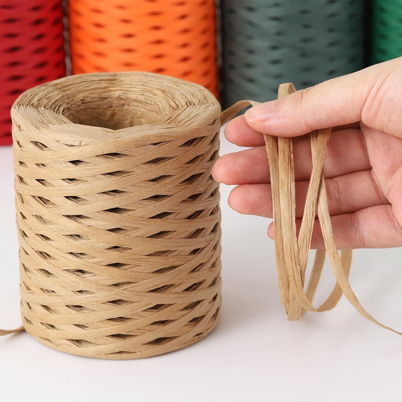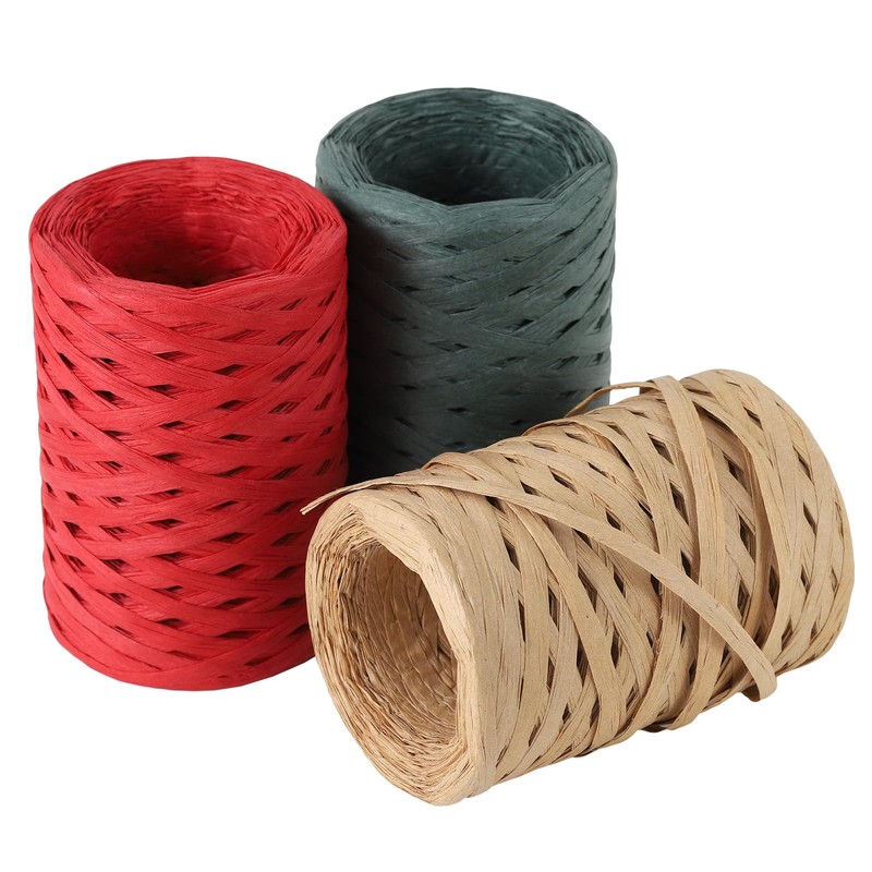 • Natural weaving string Neutral paper ribbons for decorating; twisted paper twine for wrapping vases, bottles, mason jars; paper twine for gift wrapping and scrapbooking; paper twisted ribbons for carding, Christmas raffia ribbons, raffia bags, pull Feather Decoration.