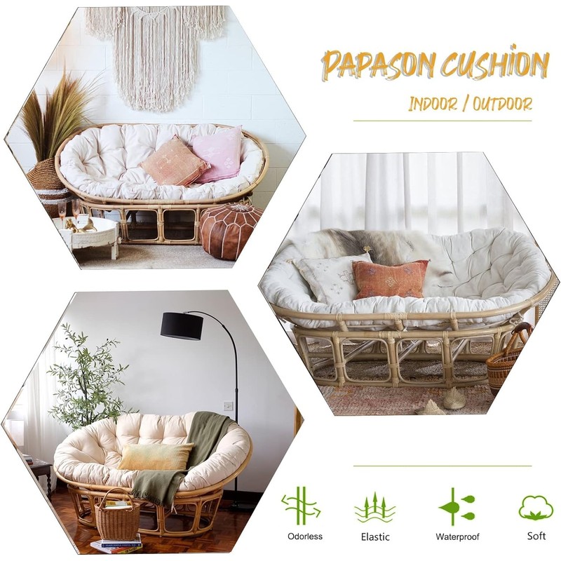 - Chairs not included! Our Double Papasan Cushion is crafted from premium cotton and polyester fiber, ensuring a soft seat for maximum comfort.