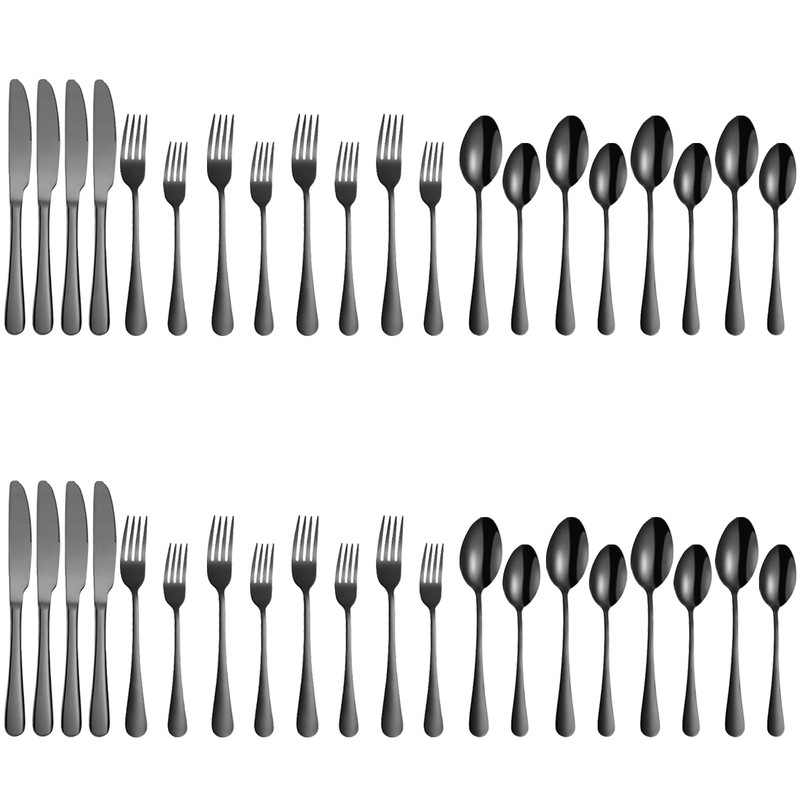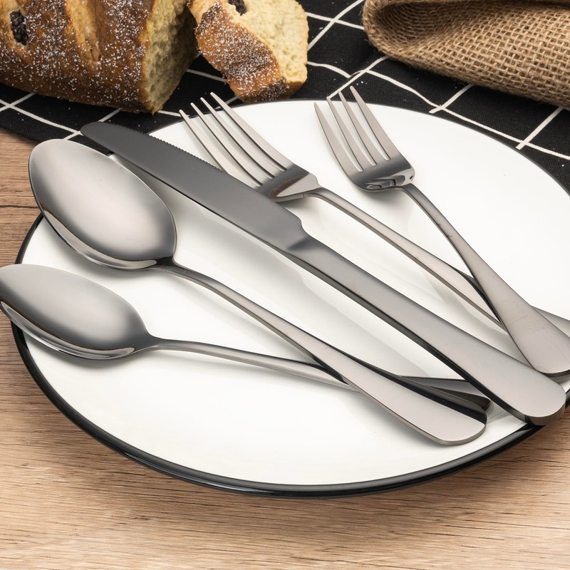 Our 5-piece set is perfect for individual use, including 1 each of dinner knife, fork, spoon, teaspoon, and salad fork. The 20-piece set caters to a party of four, featuring 4 dinner knives, forks, spoons, teaspoons, and salad forks. For larger gatherings, consider the 40-piece set, providing double the quantity for a more extensive table setting.