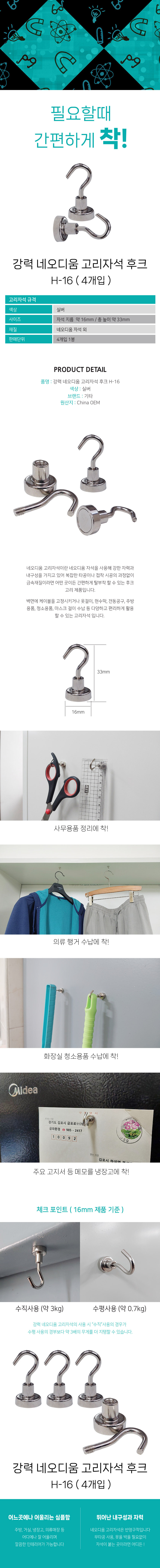 H-16 Strong neodymium ring magnet hook 16mm 4 pieces 3ea