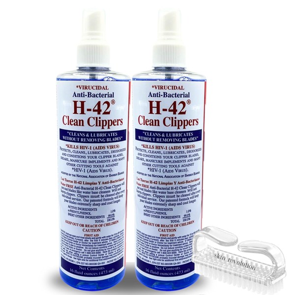 H-42 Clean Clippers Blade Cleaner with Brush - 16oz Bottle (2 Pack)