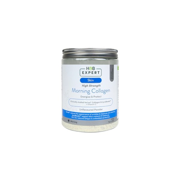Holland & Barrett Expert Morning Collagen is an advanced, high strength morning collagen containing clinically studied Verisol®, Lycobeads™ plus Vitamin C. Wake up and glow up with our energising morning collagen complex. This expert morning collagen can easily be included into your morning routine, by sprinkling onto your breakfast or by adding into your drink.