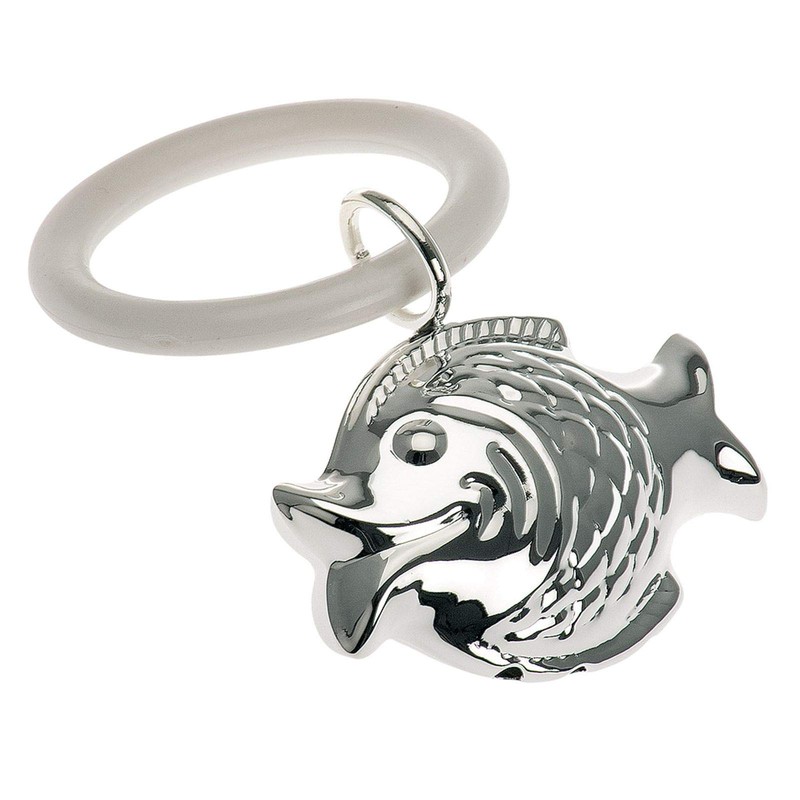 H.Bauer jun. Silver-plated baby rattle with fish motif - hand rattle with grasping toy or bite ring for children