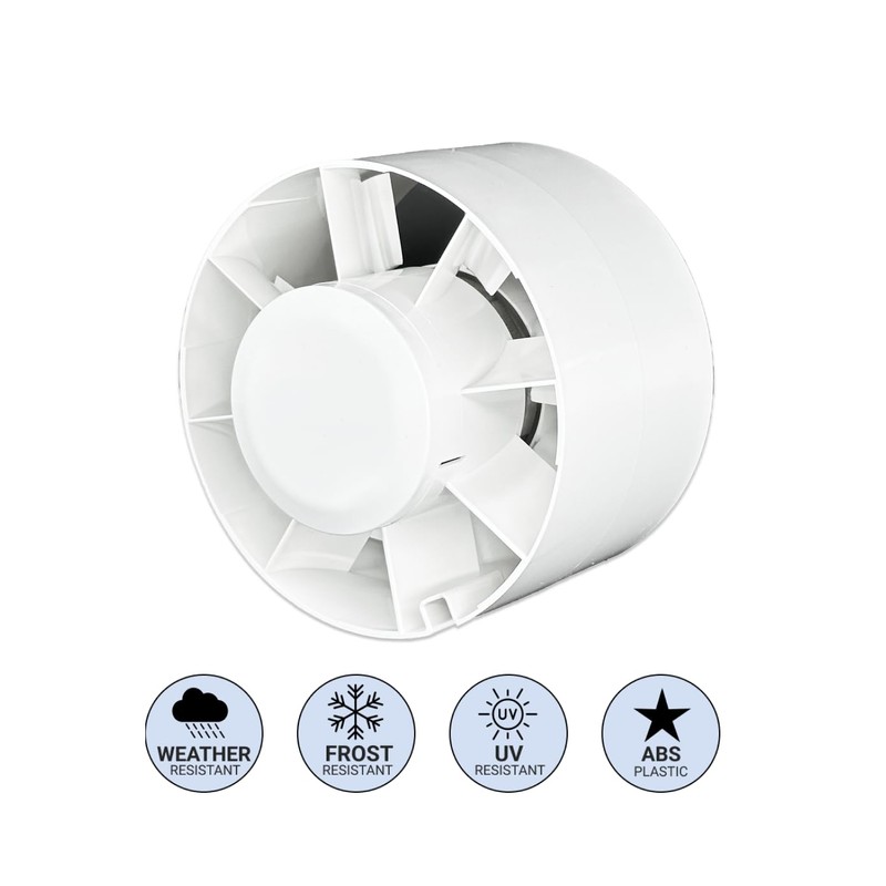 - ✔ Size and Technical Data ✔ This pipe fan has a built-in copper motor, which is durable and provides a long service life. Quiet and efficient air extraction to eliminate moisture, odours and dust. Size - diameter 125 mm │ colour - white │ air flow - 150 m³/h │ power -16 W │ rotation speed - 2360 p/m │ noise level - 36 decibels │ IP-IPX4 │ voltage/frequency: 230 V-50 Hz │ connection type: round - connector │