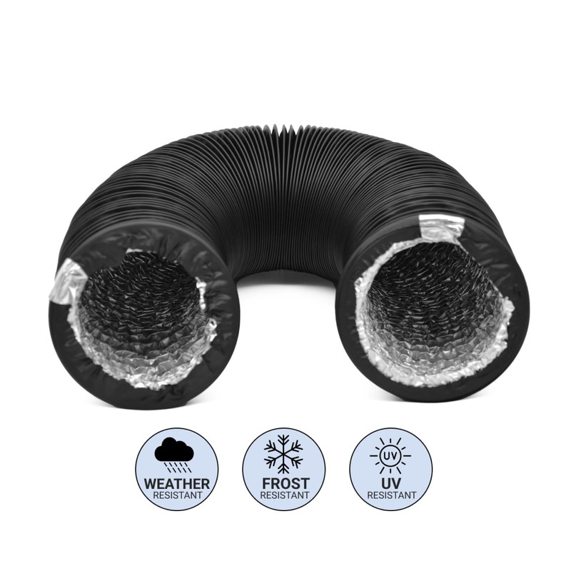 - ✔ Standard Size ✔ This ventilation pipe with aluminium insulation is ideal for a wide range of indoor applications and is compatible with ventilation systems with a diameter of 100 mm pipe and duct diameter. Extend this black hose to a maximum of 3 metres. This model is ideal for ventilation of air conditioners