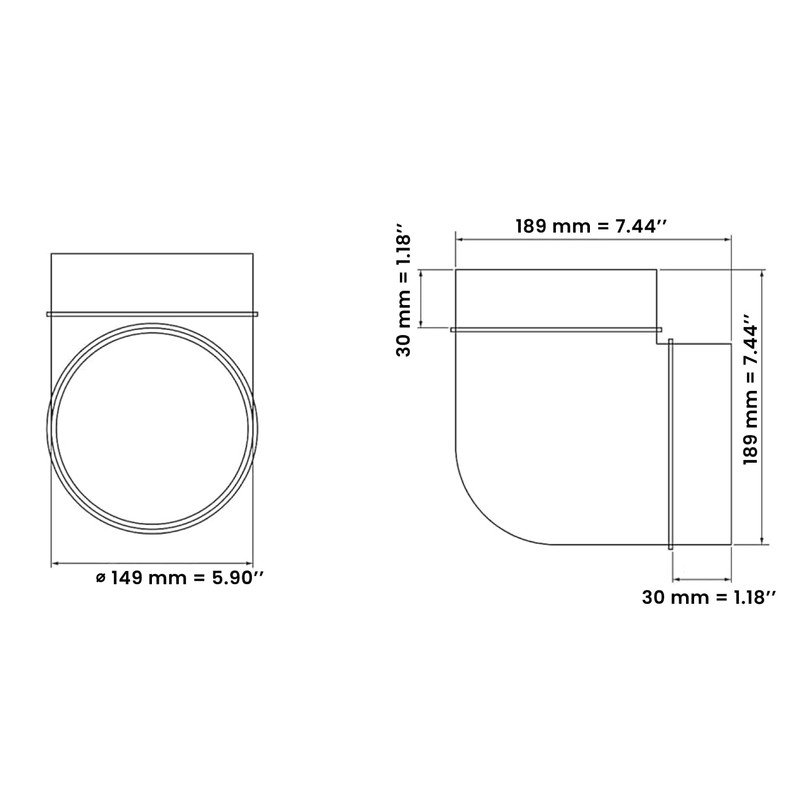 - Universal use: ideal for household and office ventilation systems, the 150 mm 90 degree pipe bend is also suitable for use in garages and industrial plants. Use it on bathroom fans, kitchen hoods or outdoors