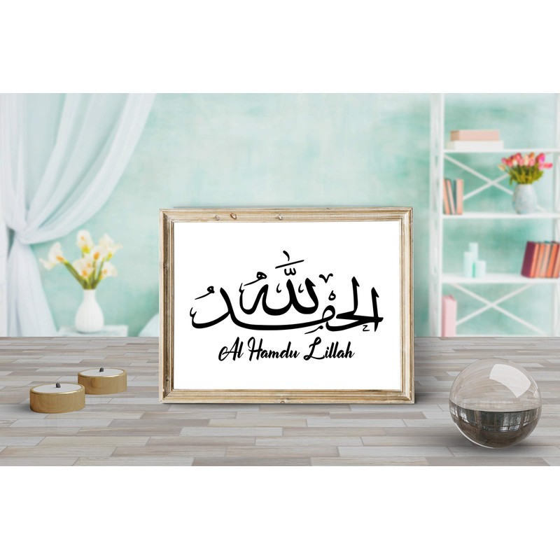 H+CO Inspired AL Hamdu Lillah Arabic Quote Wall Decor - Praise to Allah Tasbih Islamic Wall Sticker For Home Bedroom Living Pray Room Printed Poster for Muslims Religious People - 11inch x 14inch