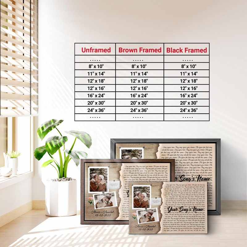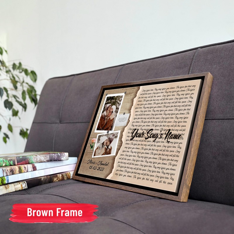 - CONVENIENCE: Our personalized canvas frames are very easy to hang and use, featuring song lyrics and images of your choice. For canvas frames, we provide a hanging kit with every purchase to support you in quickly and easily hanging our products. Our black and brown canvas frames are integrated with protective felt backing to prevent scratches.