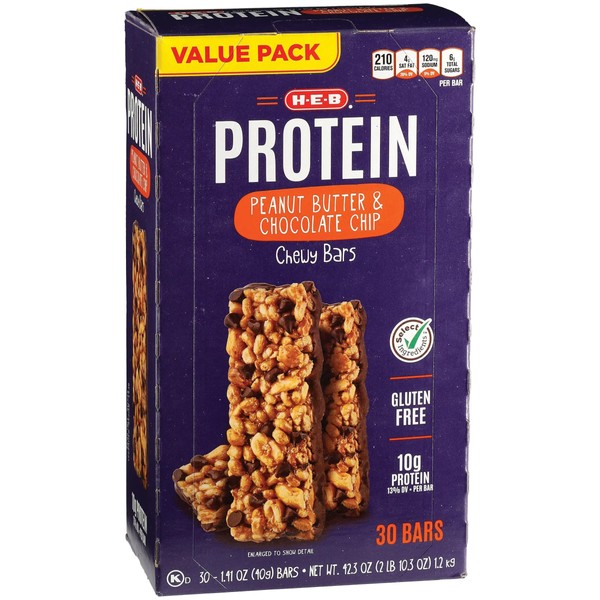 H‑E‑B Select Ingredients Protein Peanut Butter & Chocolate Chewy Bars Value Pack 30 Bars