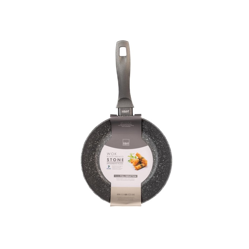 H&H Stone Grey Aluminium Wok with Rivestimento Antiaderente Stone 20 cm Induction
