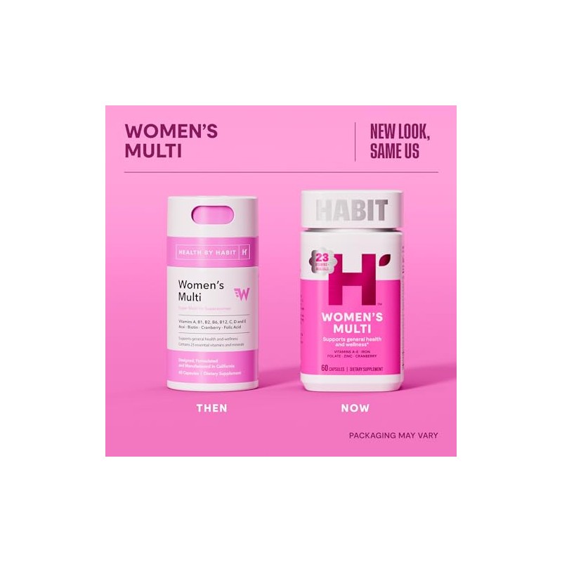 H' Habit Habit Womens Multi Supplement (60 Capsules) - New Look, Supports General Health & Wellness, 23 Essential Vitamins and Minerals, Fruit extracts, Folate, Iron, B12, Biotin, Non-GMO (1 Pack)