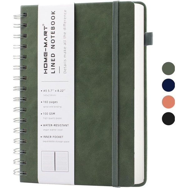 H HOME-MART A5 Lined Spiral Journal Notebook for Women & Men, 160 Pages, 100 GSM Paper,College Ruled Lined Journal Hardcover Notebook for Work & Note Taking, Journals for Writing