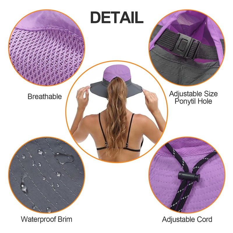 • Superior Quality Material -- Crafted with quick-drying, breathable polyester, our sun hat comes with mesh side panels and a moisture-wicking sweatband for maximum comfort. Its superior material offers excellent UPF protection, shielding your face and neck from harmful UV rays.