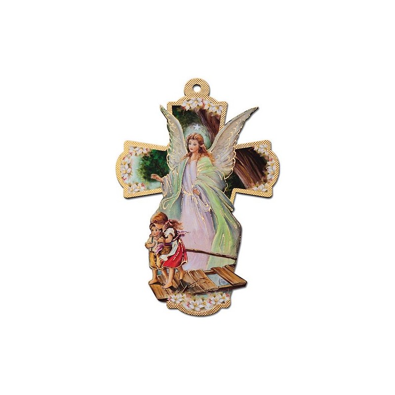 H. J. Sherman Italian Wooden Guardian Angel Wall Cross Plaque