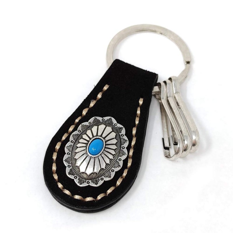 H.N.Z nskh-002a Key Chain Suede Concho Turquoise Native American Keychain Black, Black