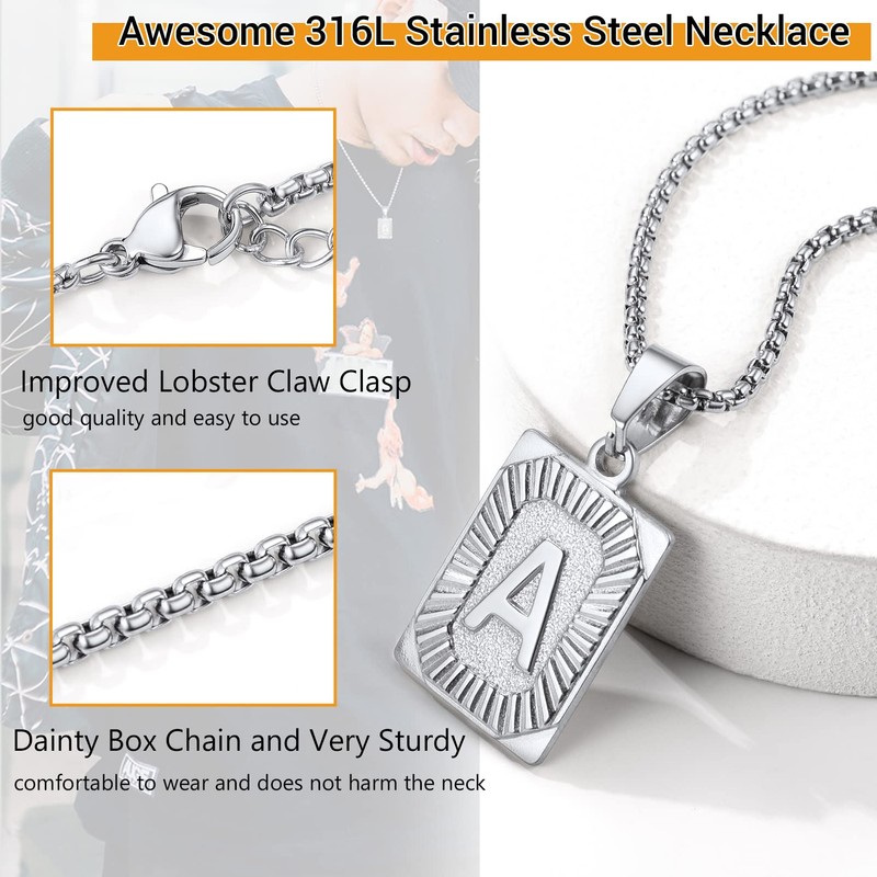 H Necklace with Initials Stainless Steel Jewelry Box Chain Square Pendant Big Letter Necklace Men Women