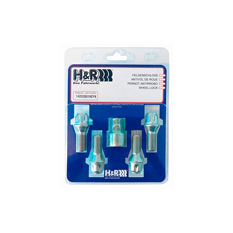 H&R 1453101KEY4 Rim Lock – Set of 4 Cone 60 ° M14 x 1.5 x 31 mm