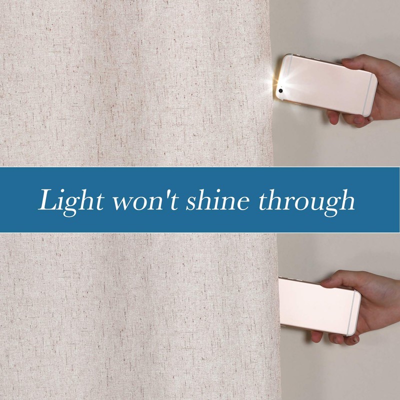 - MULTI USE FOR: These durable elegant linen curtain panels will decorate your windows and rooms with new great effect. Widely use for bedroom, living room, patio, room divider, functional and fashionable. While still have top performance on energy saving and noise reducing, create airy and breathable sweet family scene