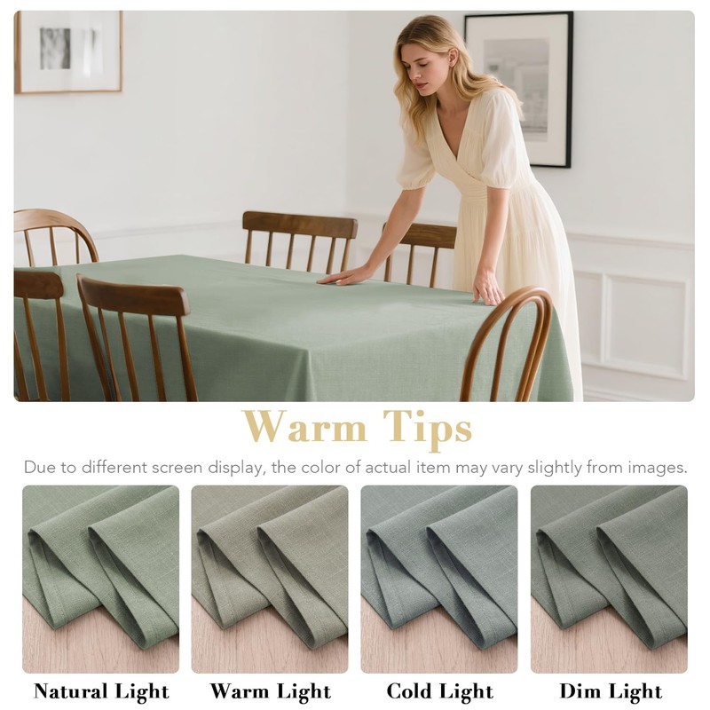 - UNIQUE DECOR: Add a touch of classic style to your home with this natural solid-hued soft tablecloth. Modern aesthetic, timeless looks and weaves gives a simple, yet modern and elegant feeling. Fit for every oblong table (Tea table, dining table, farm table, coffee table and more)