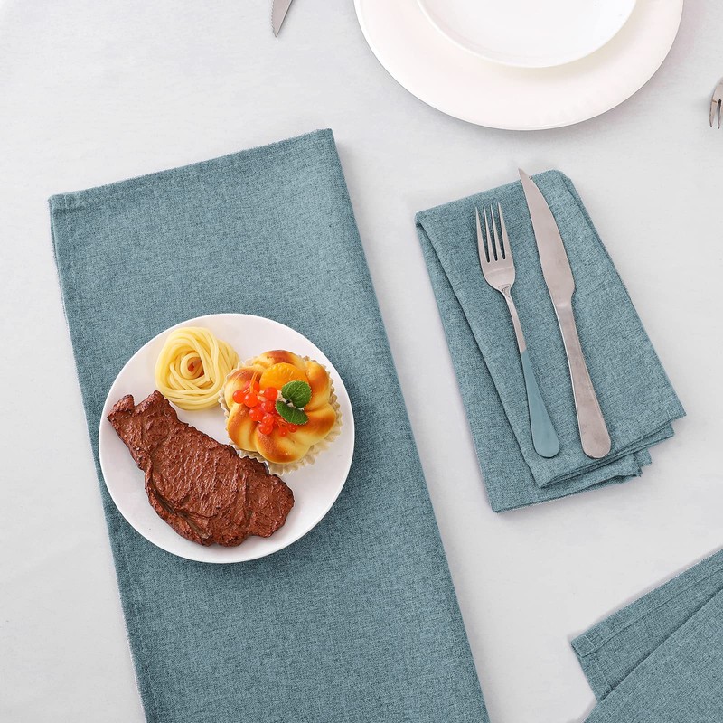 A set of 12 comfortable and durable linen look textured dinner napkins, measuring by 18 x 18 inches, is perfect for hosting all kinds of parties and events. All these elegant napkins can help you decorate the dinner table as well as nicely cover up the body at the time of having a meal. They can brighten up an otherwise neutral space, bringing a splash of color or an unusual texture into the room, completely changing the ambience. The economical pack can meet all family's daily uses.