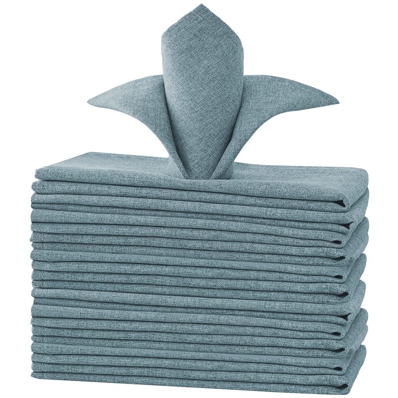 H.VERSAILTEX Linen Textured Cloth Napkins Set of 12 (18" X 18") Linen Textured Dinner Napkins Waterproof Extra Soft Thick Durable Reusable Napkins with Hemmed Edges, Heather Stone Blue