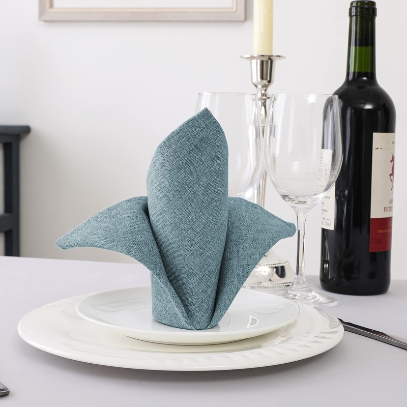 A set of 12 comfortable and durable linen look textured dinner napkins, measuring by 18 x 18 inches, is perfect for hosting all kinds of parties and events. All these elegant napkins can help you decorate the dinner table as well as nicely cover up the body at the time of having a meal. They can brighten up an otherwise neutral space, bringing a splash of color or an unusual texture into the room, completely changing the ambience. The economical pack can meet all family's daily uses.