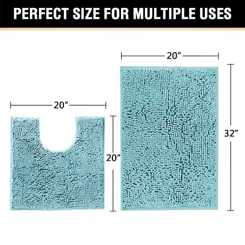 H.VERSAILTEX Original Luxury Chenille Bathroom Rug Mat (32" x 20"/20" x 20"), Extra Soft & Absorbent Shaggy Rugs, Machine Wash/Dry, Perfect Plush Carpet Mats for Tub (Curved Set, Aqua Haze)