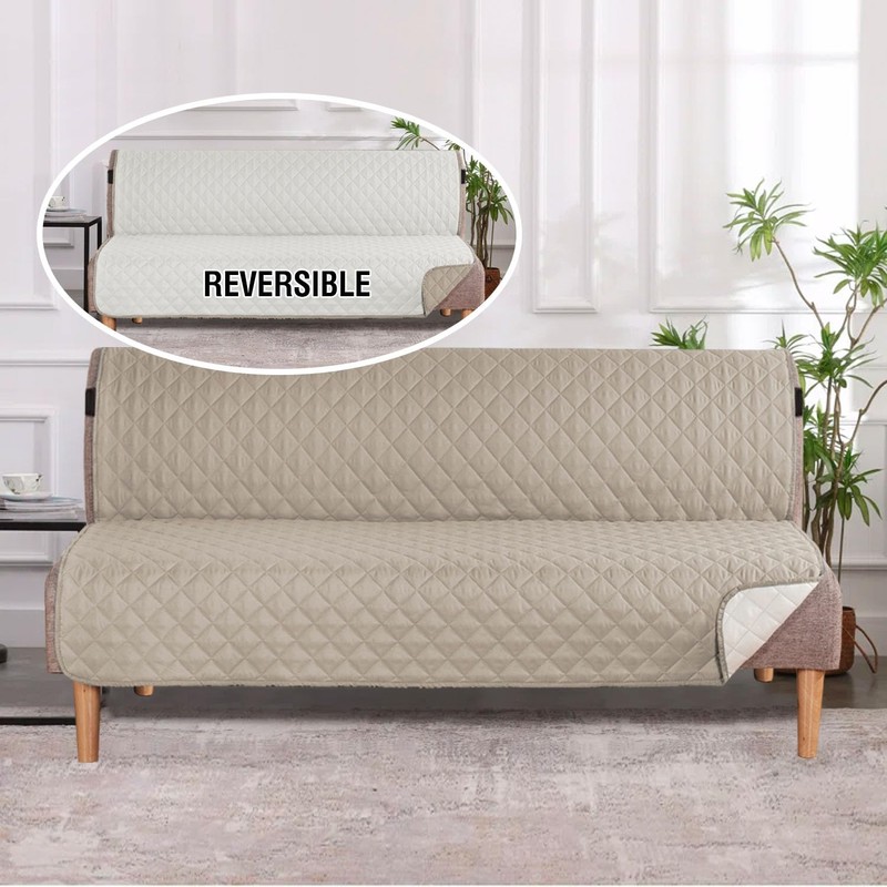 H.VERSAILTEX Reversible Futon Slipcover Water Repellent Futon Cover Seat Width Up to 70" Washable Furniture Protector 2" Elastic Strap Anti-Slip Futon Cover for Dogs (Futon, Khaki/Beige)